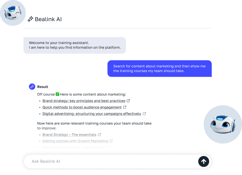 Natively built on the xAPI standard, data-driven, and focused on usability, Bealink offers an intuitive learner experience and unmatched capabilities in data management and personalization.